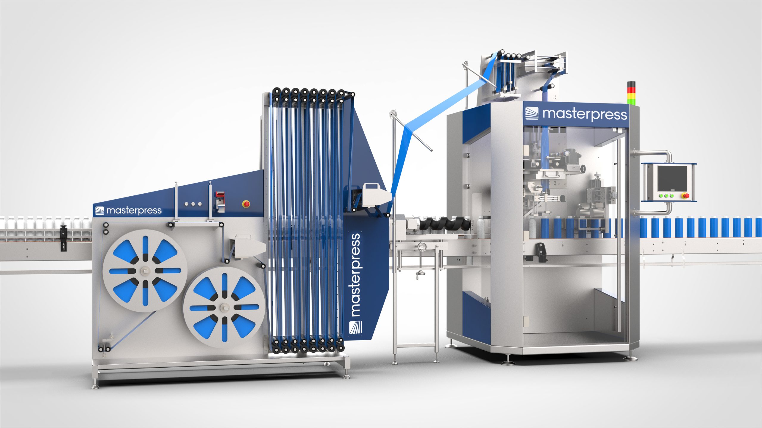 – support for label buffer, container buffer and shrink tunel