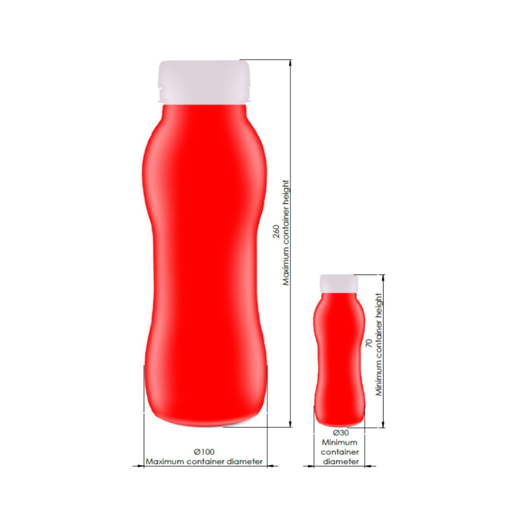 – efficiency: up to 6 000 – 24 000 pcs/h (up to 100 – 400 pcs/min) depending on the type of applicator and dependent on the type of container